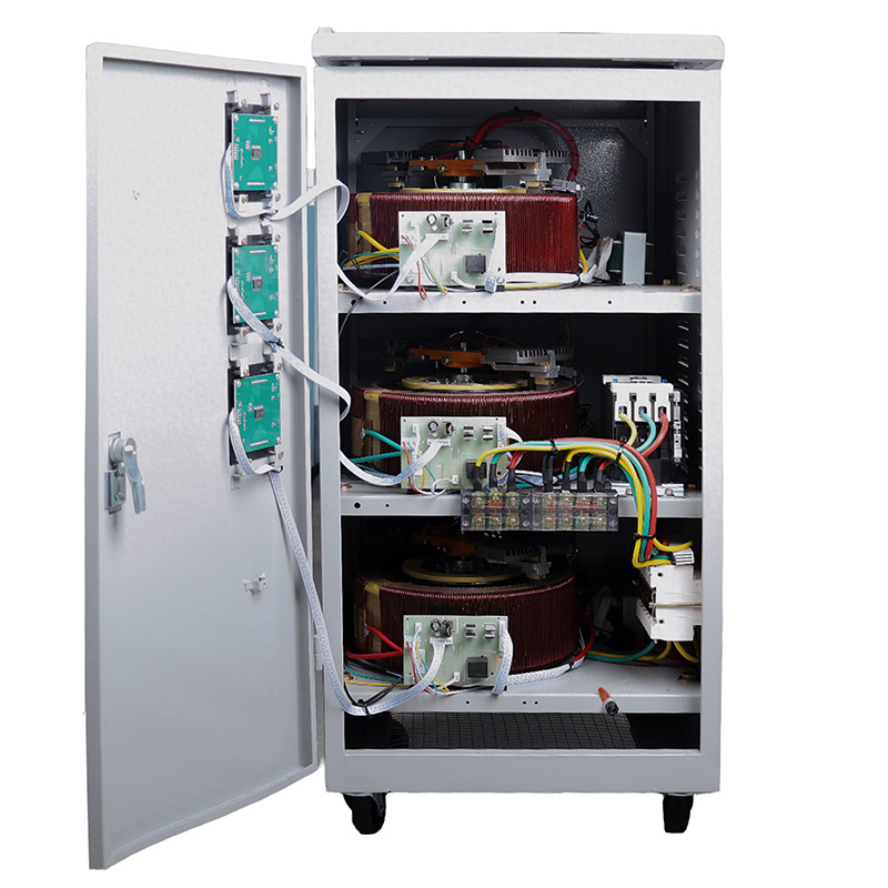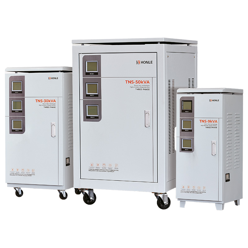 TNS Three-phase high accuracy full automatic AC voltage stabilizer is the combination of high function single phase stabilizer. The incoming power of the power network is three phase four wire system, the output power also three phase four wire with three electric meters to separately indicate three phase and shift switch and voltage meters to shift and survey each phase. This voltage stabilizer has advantages of small volume, light weigh, undistorted waveform, high efficiency, reliable performance, and time-delay, over-voltage, etc, the series of stabilizers driven, of general type, the indeed voltage stabilized sources which can be widely applied to any occasions requiring power to assure the normal operation of your power driven equipment.